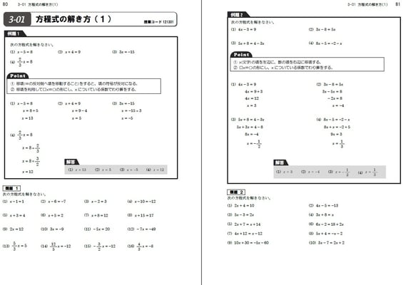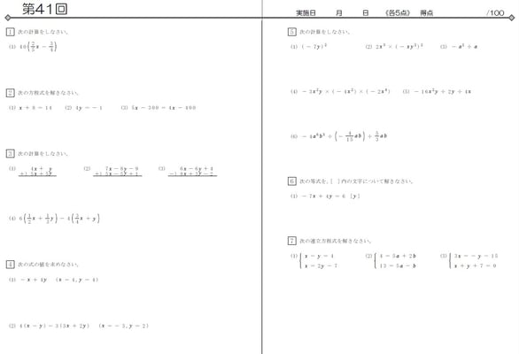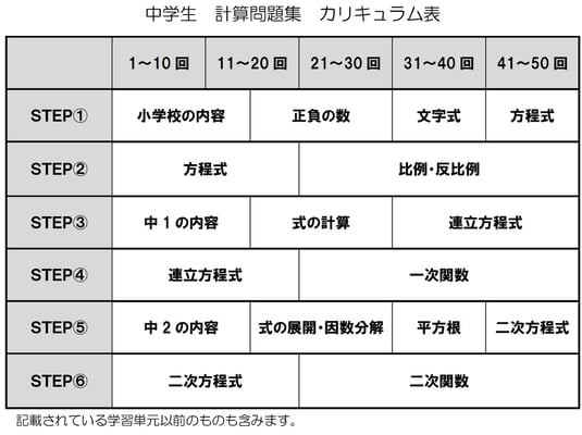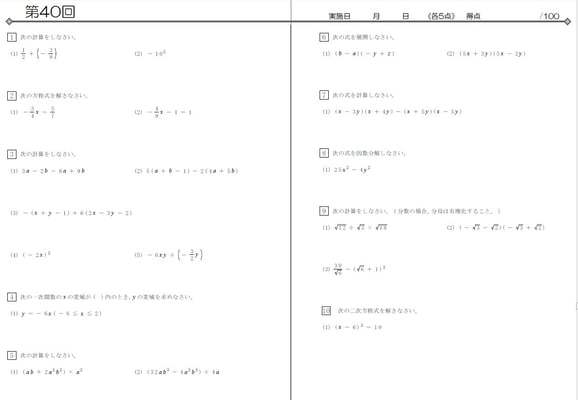 該当学年までに学習した計算問題が1回あたり20問、全50回分で1冊です。各学年2冊ずつ使用する構成。基準は1週間で2回です。数学の実力をつけるための、究極の問題集だと自負しております。