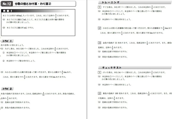 小数や分数の計算や割合の問題、面積の公式など、中学校に進級する際に絶対に押さえておかなければならない単元のボリュームを増やした、基礎に重点を置いたメインテキストです。テキスト内に単元ごとにチェックテストがあり、スモールステップで知識の定着を測れます。